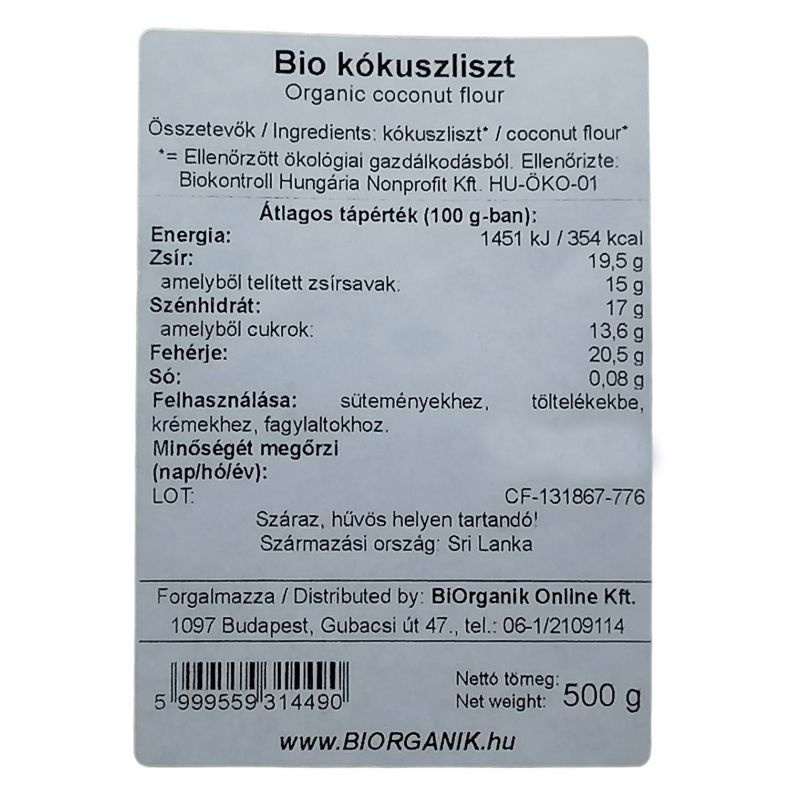 Összetevők: kókuszliszt*. *= ellenőrzött ökológiai gazdálkodásból.