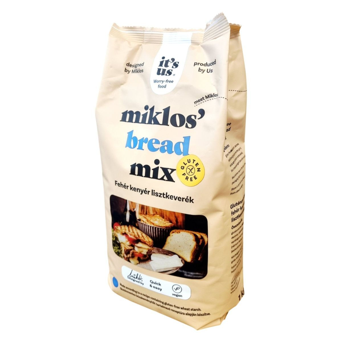 A Miklos’ Bread Mix fehér kenyér lisztkeverék gondosan összeállított alapanyagokból készül, amelyek a kenyérsütést egyszerűvé és sikeressé teszik. A termék növényi alapú, természetesen mentes a gluténtől, laktóztól és szójától, így többféle diétába is beilleszthető. A keverék gyorsan és megbízhatóan használható kézi vagy gépi sütéshez, a végeredmény pedig könnyű, puha állagú kenyér. A csomagoláson megtalálható részletes recept segít a tökéletes végeredmény elérésében. Az it’s Us márka termékei a gondtalan, „worry-free” táplálkozást képviselik, magyar fejlesztésű, minőségi alapanyagokra építve.