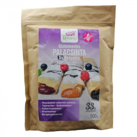 A lisztkeverék segítségével könnyedén készíthetünk gluténmentes és tejmentes vékony tésztás, a hagyományoshoz hasonló ízvilágú palacsintát. 1 csomag (500 g) palacsinta lisztkeverékből 33 db. Palacsinta süthető. A lisztkeverék 100 g energiatartalmából 104 kJ/26 Kcal energia származik élelmi rostokból. A lisztkeverék 100 g szénhidrát-tartalmából 26 g eritrit. Ennek a poliolnak nulla a kalóriatartalma, és a felszívódó szénhidráttartalma. 1 db. Kész palacsinta (40 g) szénhidrát-tartalmából 3,9 g eritrit. Ennek a poliolnak nulla a kalóriatartalma, és a felszívódó szénhidráttartalma. Hozzáadott cukrot nem tartalmaz. Természetes módon előforduló cukrokat tartalmaz. Felhasználási javaslat: palacsinta recept: hozzávalók (5 db-hoz): 75 g. Szafi Reform gluténmentes palacsinta lisztkeverék, kis csipet só, 8 g. Kókuszolaj, 2 db. M-es tojás, 170 g. Szoba hőmérsékletű víz. Elkészítés: kézi habverővel keverjük ki a vizet, tojást, folyékony kókuszolajat, sót, majd adjuk hozzá a lisztkeveréket és gyors mozdulatokkal keverjük ki. Ezután pihentessük 15 percet, majd kiolajozott felforrósított serpenyőben közepes hőfokon süssük ki a palacsintákat. (akkor fordítható meg, ha a széle barnulni kezd.)