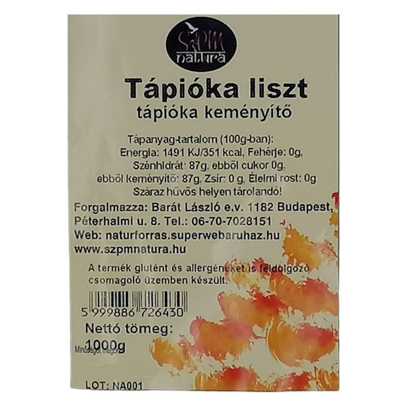A tápióka liszt egy rendkívül sokoldalú és tápláló alapanyag, amelyet a tápióka gyökereiből nyernek. Ez a liszt különösen népszerű a gluténmentes diétát követők körében, mivel természeténél fogva nem tartalmaz glutént, így ideális választás lehet azok számára, akik érzékenyek a gluténra vagy cöliákiában szenvednek. A tápióka liszt finom, krémes állagú, és semleges ízének köszönhetően könnyen beilleszthető különböző ételekbe. Használható péksütemények, palacsinták, pudingok és szószok készítéséhez, valamint sűrítőanyagként is megállja a helyét. A tápióka liszt gazdag szénhidrátforrás, és energikusabbá teheti a napot, miközben segít a megfelelő emésztés fenntartásában. A liszt színét és állagát tekintve is vonzó, így nemcsak tápláló, hanem esztétikus ételek készítésére is alkalmas.