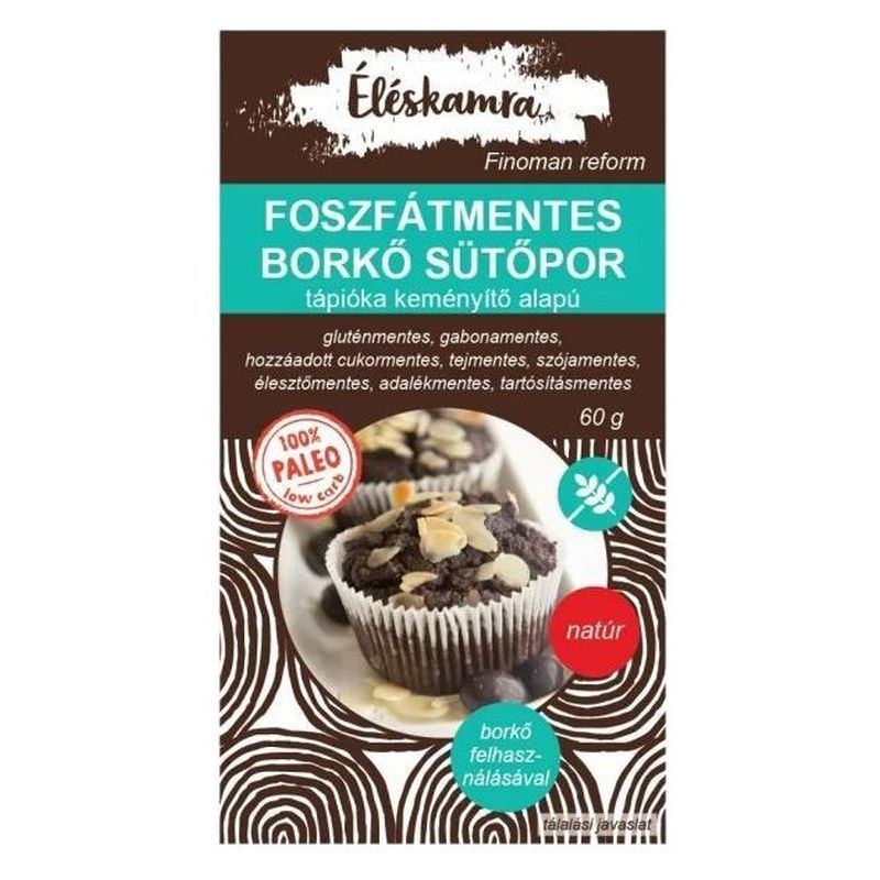 Paleolit éléskamra foszfátmentes paleo sütőpor 60 g. Foszfátmentes, természetes borkősavat tartalmazó sütőpor, tápióka keményítővel készítve. Egy csomag átlag 15-20 sütésre elegendő mennyiség, ezért gazdaságos a felhasználása. Jól helyettesíti a hagyományos sütőport a sütések során. Alacsony szénhidrát tartalom (40 g alatt) Alacsony zsírtartalom. A természetes borkősavat tartalmazó sütőpor nem tartalmaz foszfátokat, amelyek a szervezetünkre kedvezőtlen hatást gyakorolhatnak (pl. Kivonják A-vitaminokat, ásványi anyagokat) és kukoricakeményítőt sem használtunk. Kiadósabb a felhasználása, kevesebb is elegendő a megszokott sütőporhoz képest, hiszen csak annyi tápióka keményítőt adtunk hozzá, mely az aktív hatóanyagokat egyenletesen elegyíti. A paleolit éléskamra sütőpor gondosan összeállított arányainak köszönhetően nincs szúrós szódabikarbóna íze, a vele készült sós vagy édes pékáruból nem érződik ki az íze. Felhasználási javaslat: tápióka keményítővel és természtes borkósavval készült sütőpor. Mely alkalmas mindenféle liszt térfogatának növelésére. Javasolt mennyiség: 100 g paleo liszthez egy csapott mokkáskanál sütőpor adagolása (kb. 2-3 g) A sütőport 1 evőkanál citromlével érdemes kipezsegtetni. Szezámmagot és dióféléket felhasználó üzemben készült. Száraz, hűvös helyen tartandó.