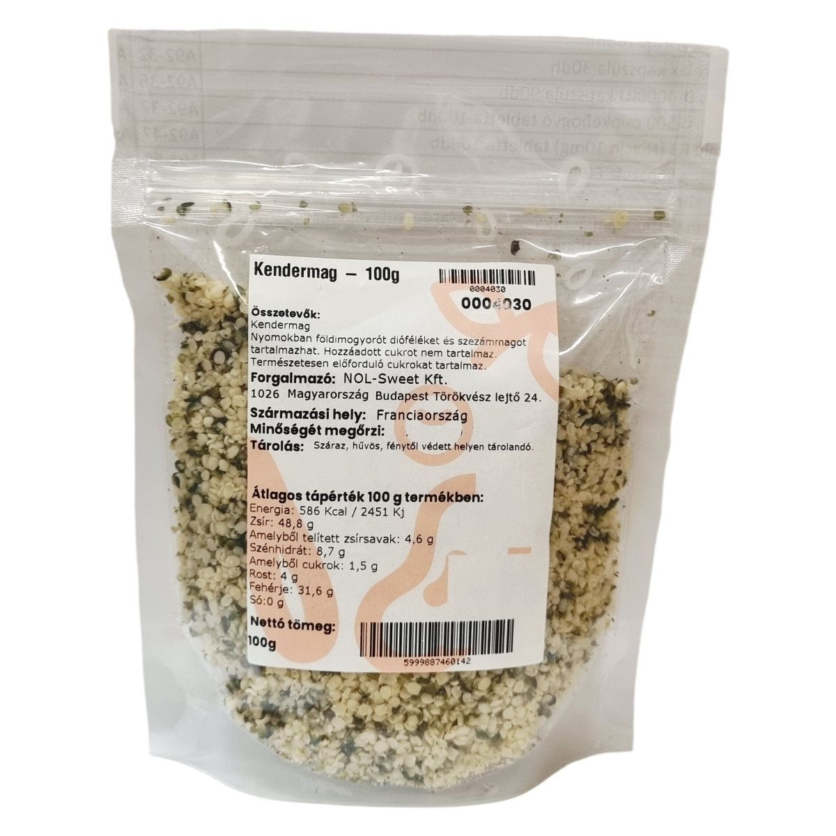 A kendermag származási helye Franciaország. A termék 100 g-os kiszerelésű, minőségét megőrzi a feltüntetett dátumig. Természetesen előforduló cukrokat tartalmaz, továbbá nem tartalmaz hozzáadott cukrot. Az alapvető tápértékek között kiemelkedő a fehérjetartalom és a jelentős zsírtartalom, ezen belül a telített zsírsavak mennyisége is megadott. A termék nem tartalmaz sót. Nyomokban előfordulhatnak egyéb allergén magvak, így földimogyoró, diófélék és szezámmag.