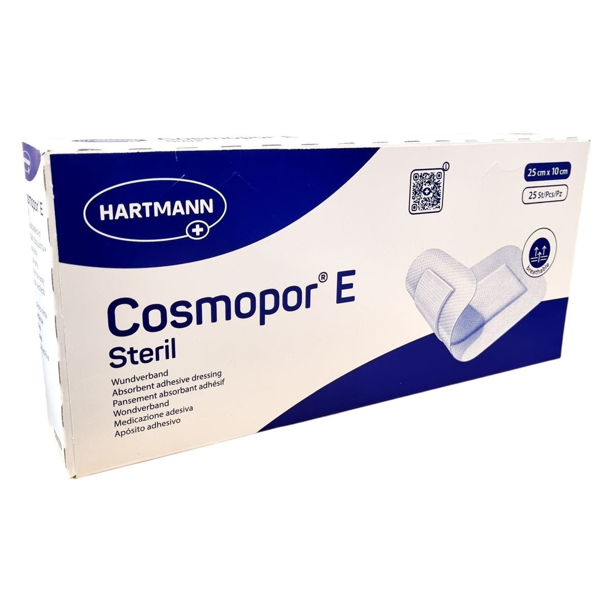 A Cosmopor E Steril egy légáteresztő, abszorbens sebfedő tapasz, mely mérete 25 cm x 10 cm, és 25 darabos kiszerelésben érhető el. A steril tapasz csökkenti a fertőzés kockázatát és megkönnyíti a sebek gyógyulását. Az EO sterilizált termék különösen praktikus peel csomagolásban kerül forgalomba, amely biztosítja a húzásra történő egyszerű és gyors alkalmazhatóságot. Nem szabad használni, ha a csomagolás sérült vagy láthatóan rongált. A termék Spanyolországban készült és megfelel az európai minőségi és egészségügyi előírásoknak, melyet a CE jelölés és a Medical Device besorolás garantál. A termék több nyelven is azonos funkcióval kerül forgalomba, így az összetett európai piac igényeit is kielégíti.