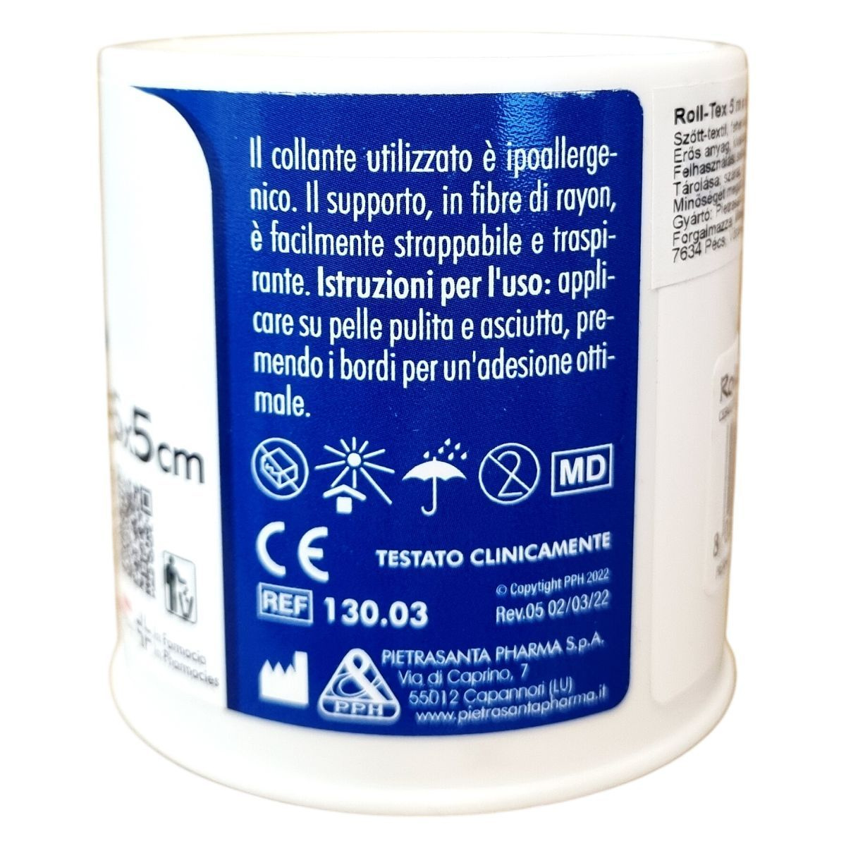 A MASTER•AID® Rolltex® egy 5 m x 5 cm méretű, fehér színű szövött-textil ragtapasz, amelyet a Pietrasanta Pharma S.p.A. gyárt Olaszországban. A termék hypoallergén, légáteresztő és erős tapadású, így ideális sebkötöző anyagok rögzítésére. A ragtapasz latexmentes, ami csökkenti az allergiás reakciók kockázatát. A terméket száraz, hűvös helyen kell tárolni, és a használat során tiszta, száraz bőrre kell felhelyezni, a széleket alaposan lenyomva a megfelelő tapadás érdekében. A terméket a Master-Pharma Kft. forgalmazza Magyarországon.