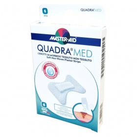 A Quadra®Med Master·Aid a professzionális sebkezeléshez készült ragtapasz-párna, amely puha, légáteresztő, nem szőtt textilből áll. A sebpárna klórhexidin-diglukonát 0,5% antibakteriális anyagot tartalmaz, amely magas nedvszívó képességgel rendelkezik, így hatékonyan védi a sebet a fertőzésektől. A tapasz ragasztóanyaga oldószermentes és hypoallergén, minimalizálva az irritáció kockázatát. Az eszköz klinikailag tesztelt, alkalmas az egészségügyi ellátás fontos eszközeként a seb mikro-környezetének kontrollálására. Használatához a seb és környezete alapos tisztítása, fertőtlenítése szükséges, az alkalmazás tiszta és száraz bőrre történik, a ragasztó szélét jól le kell nyomni. A kötést szükség szerint cserélni kell a megfelelő sebgyógyulás biztosítása érdekében. A termék hat darabos kiszerelésben, olasz gyártásban érhető el.