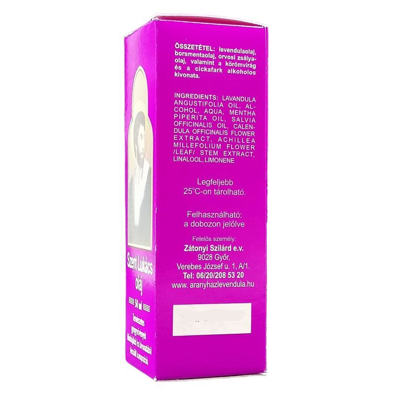 Összetétele: levendulaolaj, mentaolaj, orvosi zsályaolaj, cickafark-tinktúra (alkoholos extraktum), körömvirág-tinktúra (alkoholos extraktum).