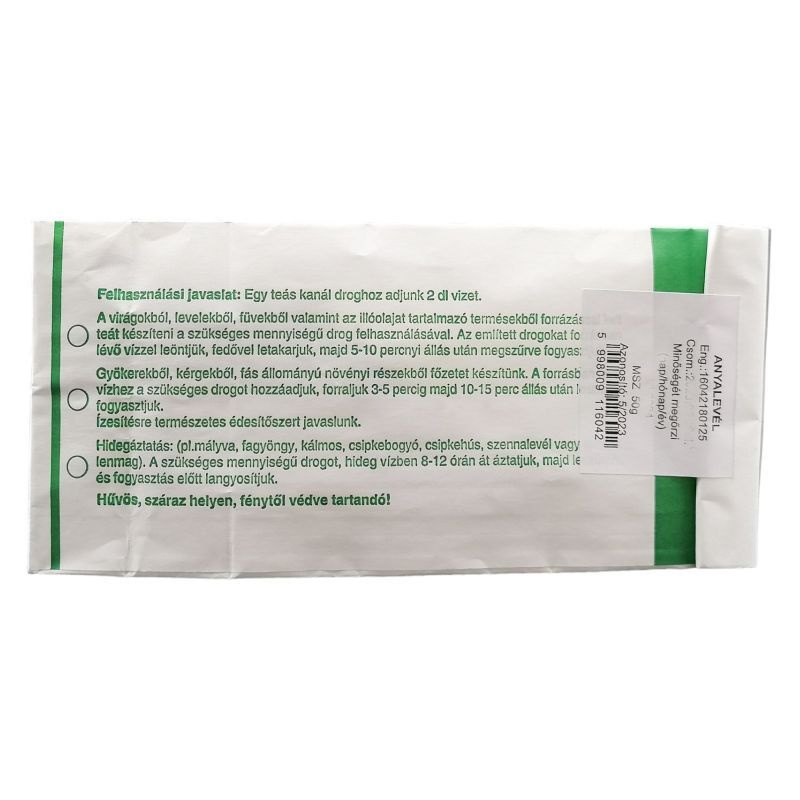 Kiszerelés: 50g. Csomagolás: aromazáró zacskó. Szavatosság: a zárócimkén taláható időpontig. Hűvös, száraz helyen fénytől védve tartandó.