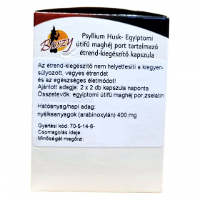 A Boszey Psyllium Husk kapszula egyiptomi útifű maghéj port tartalmaz, amely hozzájárulhat az emésztés támogatásához és a bélrendszer egészségének megőrzéséhez. A termék napi adagja 400 mg nyálkaanyagot biztosíthat.
