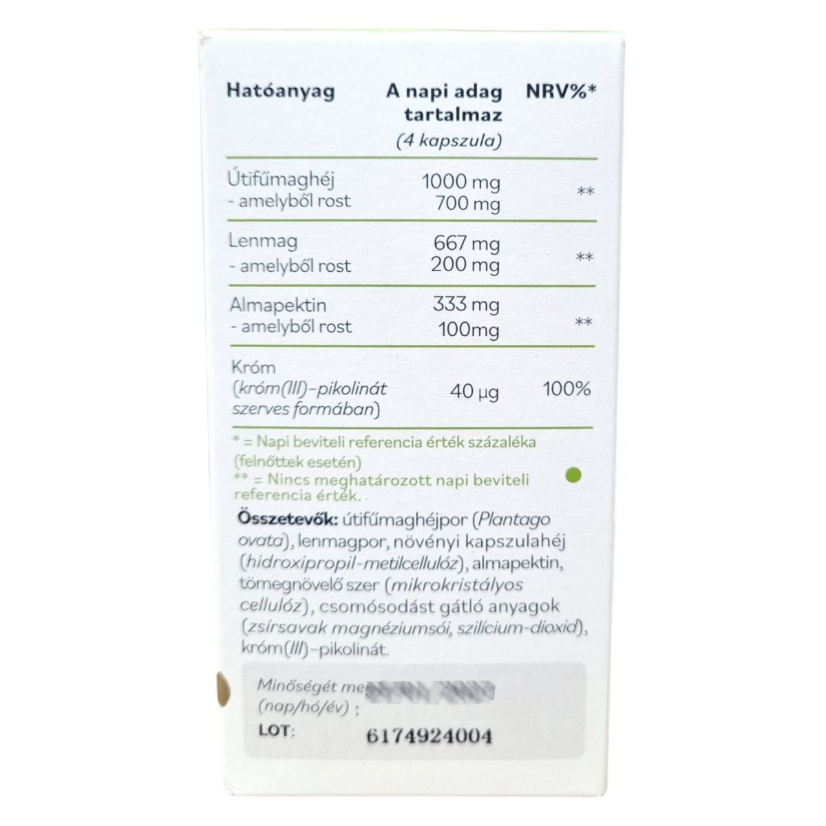 Útifűmaghéjpor (Plantago ovata), lenmagpor, növényi kapszulahéj (hidroxipropil-metilcellulóz), almapektin, tömegnövelő szer (mikrokristályos cellulóz), csomósodást gátló anyagok (zsírsavak magnéziumsói, szilícium-dioxid), króm(III)–pikolinát.