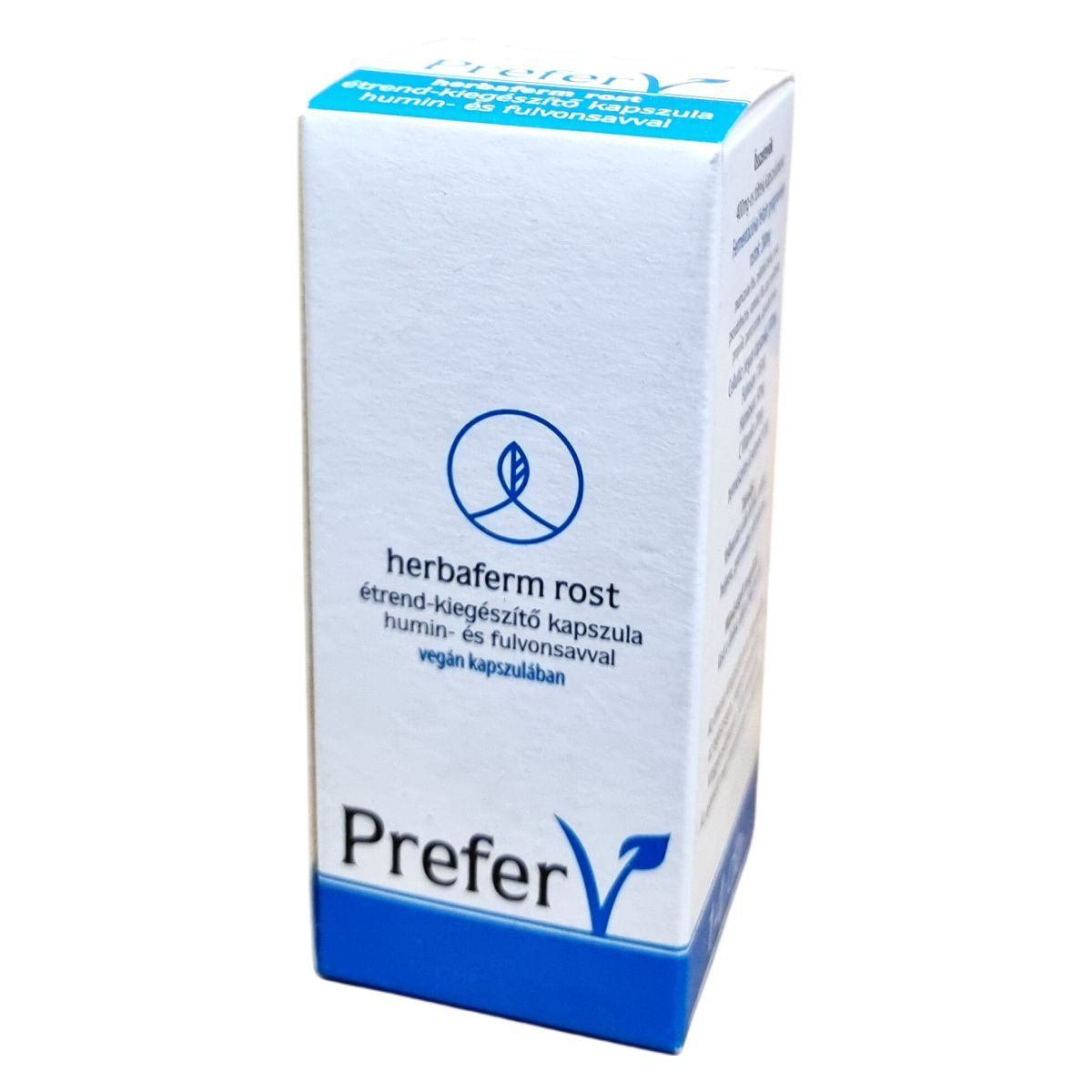 A Herbaferm rost étrend-kiegészítő kapszula egy vegán termék, amely humin- és fulvonsavval készült. A kapszula különféle gyógynövény rostokat tartalmaz, mint például matricariae flos, millefolii herba, és rosae pseudofructus. A termék napi kétszeri fogyasztása hozzájárulhat a szervezet egészséges működéséhez. A kapszulák tárolása hűvös, száraz helyen javasolt, gyermekek elől elzárva. A termék nem helyettesíti az egészséges étrendet és életmódot, és fontos, hogy az ajánlott napi mennyiséget ne lépjük túl.