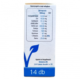 Az étrend-kiegészítő nem helyettesíti az egészséges, vegyes étrendet és a kiegyensúlyozott életmódot. Az ajánlott napi mennyiséget ne lépje túl!