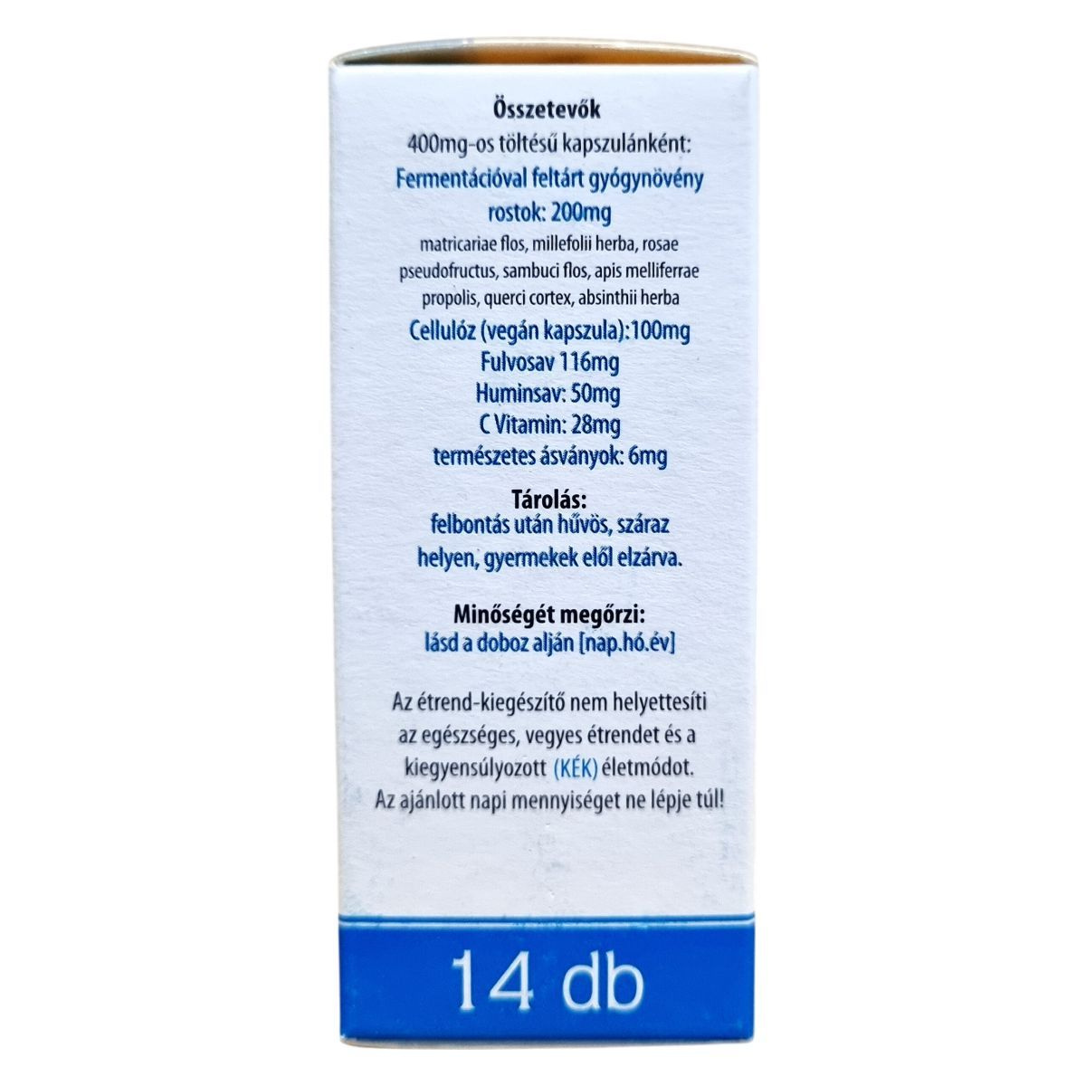 matricariae flos, millefolii herba, rosae pseudofructus, sambuci flos, apis melliferrae propolis, querci cortex, absinthii herba, cellulóz (vegán kapszula)