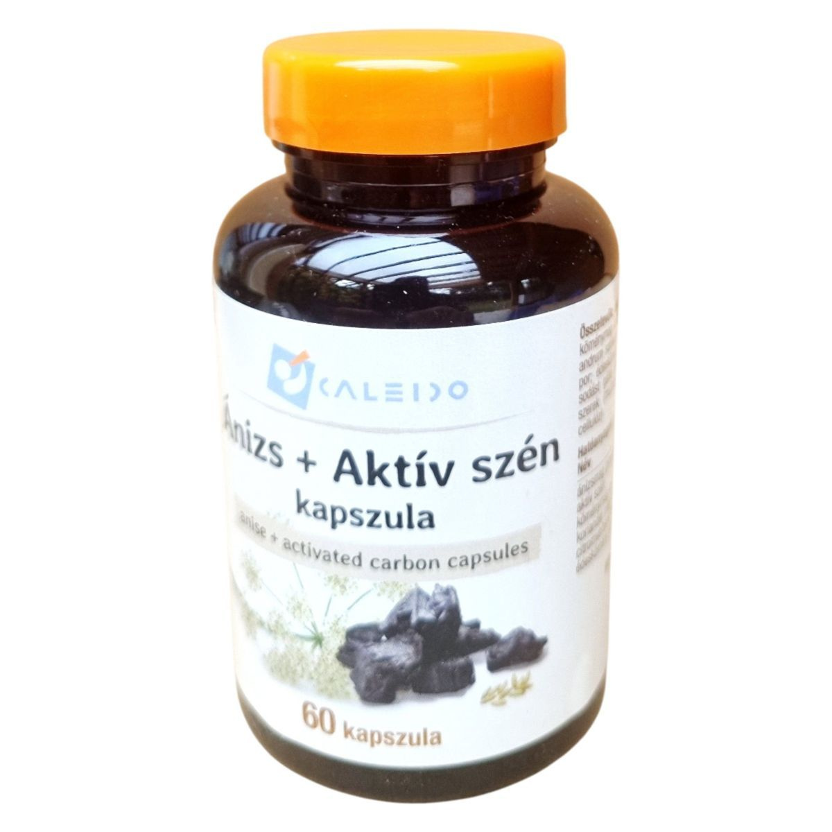 A Caleido Ánizs + Aktív szén kapszula egy speciális étrend-kiegészítő, amely ánizs, köménymag, koriander mag, citromverbéna levél és édeskömény gumó porok kombinációját tartalmazza. Az aktív szén jelenléte segíthet a méreganyagok megkötésében, míg a gyógynövények hozzájárulhatnak az emésztőrendszer támogatásához. A termék Spanyolországból származik, és a Caleido IT-Outsource Kft. forgalmazza. A kapszulák hidroxi-propil-metil-cellulóz alapúak, és a termék nettó tömege 25,6 g.