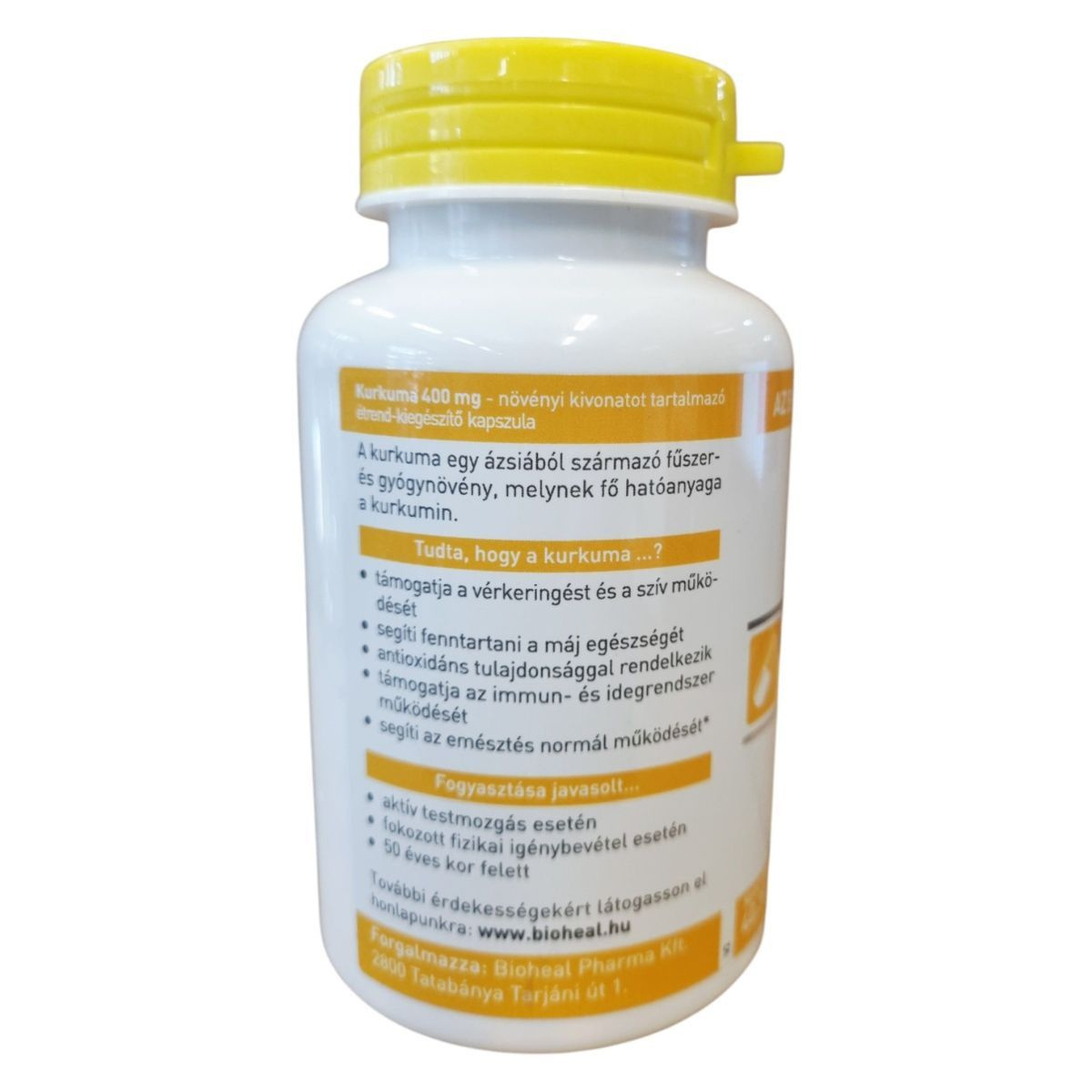 A Bioheal Kurkuma 400 mg kapszula egy növényi kivonatot tartalmazó étrend-kiegészítő, amely kurkuma kivonatot tartalmaz. A kurkuma, egy ázsiából származó fűszer- és gyógynövény, fő hatóanyaga a kurkumin. A termék fogyasztása javasolt aktív testmozgás, fokozott fizikai igénybevétel esetén, valamint 50 éves kor felett. A kurkuma támogathatja a vérkeringést és a szív működését, segíthet fenntartani a máj egészségét, antioxidáns tulajdonságokkal rendelkezhet, és támogathatja az immun- és idegrendszer működését, valamint az emésztés normál működését. További információkért látogasson el a www.bioheal.hu weboldalra.