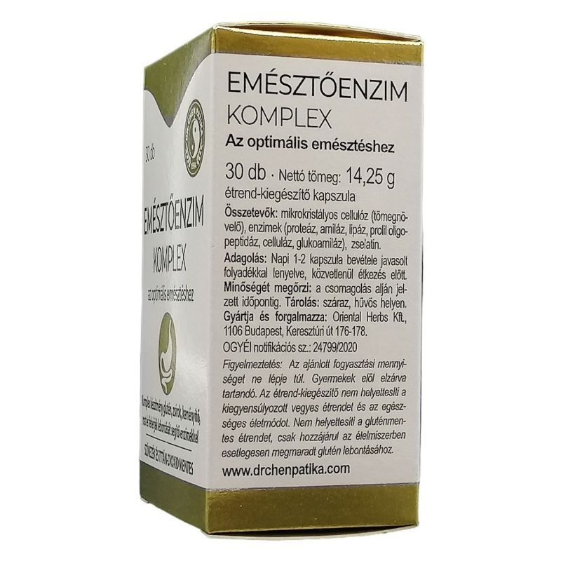 Emésztőenzim komplex recept - különböző tápanyagok lebontásához, az emésztés elősegítéséhez. A proteáz enzim a fehérjék, a lipáz a zsírok, az amiláz a keményítő, a celluláz az élelmi rostok lebontásában vesz részt. A prolil-oligopeptidáz gluténbontó enzim. Napjaink civilizációs velejárója az emésztés egyensúlyának hosszabb-rövidebb időre történő elvesztése. Az egészségmegőrzés érdekében érdemes az optimális állapot fenntartására törekedni.