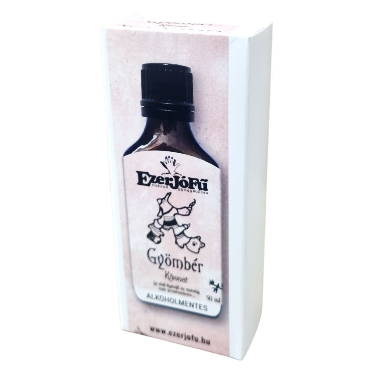 Az EzerJófű Gyömbér Kivonat 50 ml-es kiszerelésben készül alkoholmentes változatban. A termék növényi glicerinből és rendezett vízből áll, melybe gyömbér kivonat került. Használat előtt a flakont fel kell rázni. A fogyasztása naponta háromszor 20-40 csepp ajánlott, étkezések előtt fél órával, így táplálkozásunkban sokféleképpen alkalmazható. A készítmény tárolására a száraz, hűvös és sötét hely ajánlott, bontás után hűtőszekrényben tartandó. A terméket az Ezerjofu Gyógynövény Kft. gyártja és forgalmazza Zalaegerszegen.