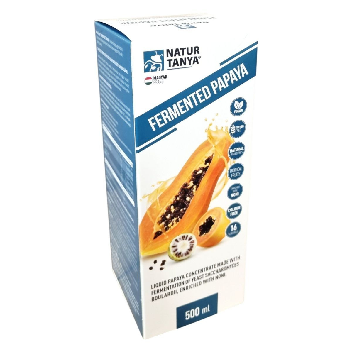 A Natur Tanya® Fermentált Papaya speciális eljárással, biofermentációval készült papaya gyümölcslé, amelyhez Saccharomyces boulardii élesztőt adnak. A fermentáció alatt a cukor és erjeszthető anyagok lebomlanak, majd a folyadékot 40 °C alatti levegővel szárítják, megőrizve annak funkcionális hatóanyagait. Az ital természetes forrásból származó trópusi gyümölcsökből készül, különleges ízélményt nyújt. Alacsony energia- és szénhidrátbevitel mellett is fogyasztható, magas fehérjetartalmú étrendbe illeszthető, vagy egyszerűen az egészséges, természetes étrendet keresők számára ajánlott.