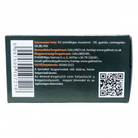 A GALLMET MIX természetes epesavakból és többféle gyógynövény kivonatából álló, bélben oldódó étrend-kiegészítő kapszula, mely az emésztés és az epeműködés támogatására készül. Hatóanyagai között szerepel a liofilizált marhaepe és kivonatok, mint a mentalevél, pemetefű, fehérmályva gyökér, édesgyökér és édeskömény, amelyek hozzájárulhatnak a gyomor- és bélrendszer egészséges működéséhez, az emésztőrendszer támogatásához és az epeműködés normalizálásához. A termék egy nemzetközi laboratóriumi vizsgálaton esett át, amely többek között igazolta a mikrobiológiai tisztaságot, a szennyezőanyagok hiányát, a nehézfémmentességet, valamint a doppingmentességet is. A készítmény használata során figyelembe kell venni az előírt adagolást és az esetleges ellenjavallatokat, mint a heveny eperoham vagy terhesség, továbbá ajánlott a használat megkezdése előtt szakemberrel történő konzultáció.