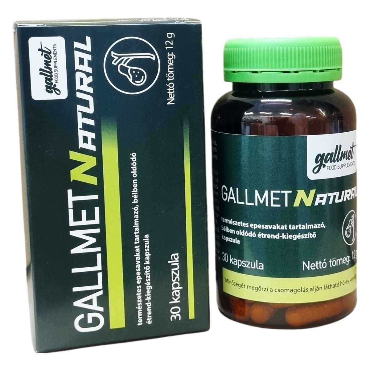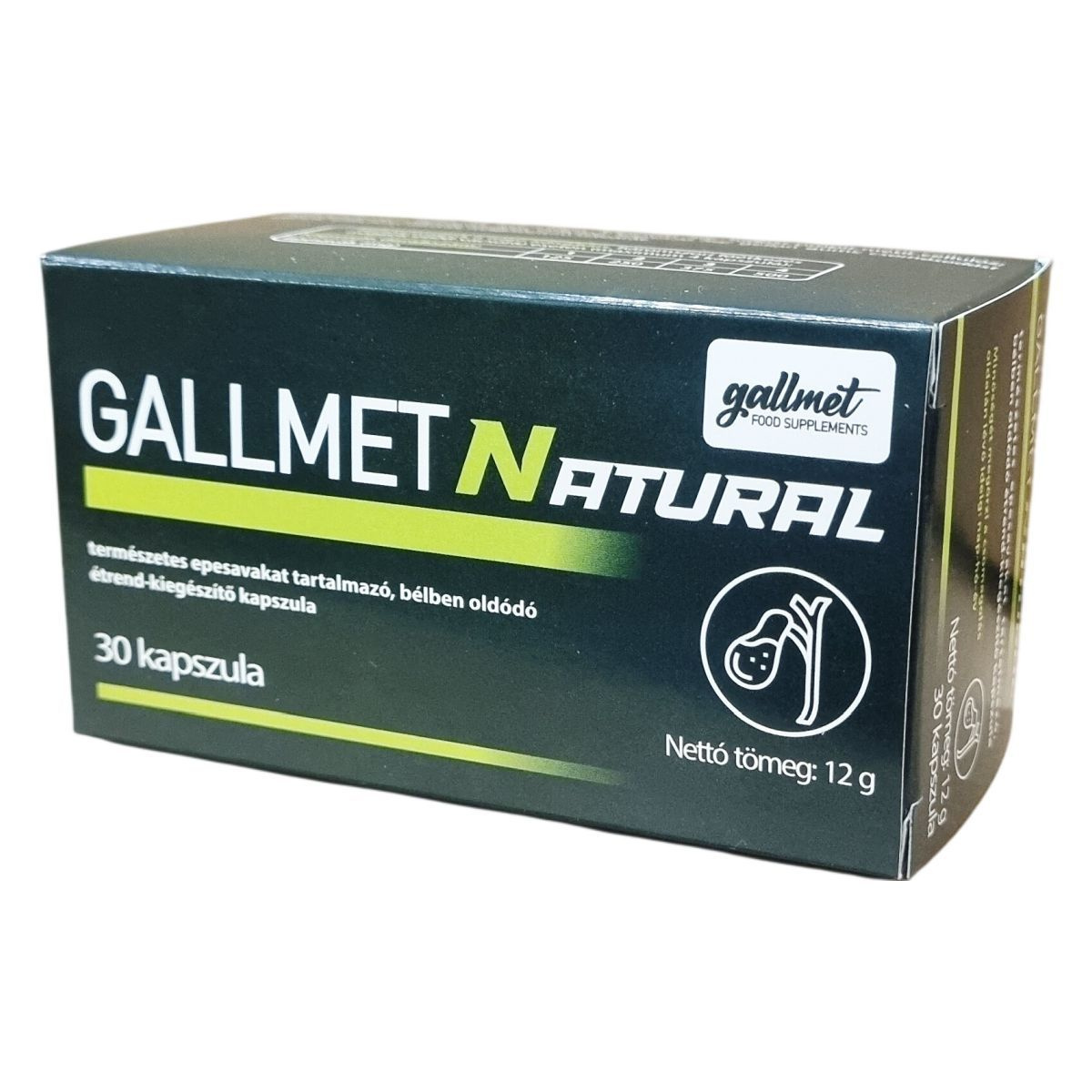 A GALLMETNATURAL természetes epesavakat tartalmazó étrend-kiegészítő kapszula liofilizált marha epe kivonatot tartalmaz, mely bélben oldódó kapszula héjban található. Az ajánlott napi adag három részre osztva bevéve, segítheti a szervezet epesav-szintjének támogatását. A termék nem alkalmas heveny eperohamok vagy epevezeték-elzáródás okozta sárgaság kezelése alatt, illetve terhesség idején nem szedhető. Az egyéni érzékenység esetén az alkalmazás elején enyhe hasmenés vagy émelygés jelentkezhet. A készítmény használata előtt javasolt szakemberrel konzultálni, különösen, ha más epére ható készítményeket is szed. A termék minőségét nem befolyásolja a tárolás, ha azt kisgyermekektől elzárva, hűvös helyen tartják, és nem helyettesíti a kiegyensúlyozott, vegyes étrendet és az egészséges életmódot. A GALLMETNATURAL a nemzetközi WESSLING laboratórium által vizsgált termék, amelyet mikrobiológiai, szennyezőanyag-, mérgező anyag-, nehézfém-, rádióaktivitás-, dopping mentességi és allergén vizsgálatok alapján ellenőriztek.