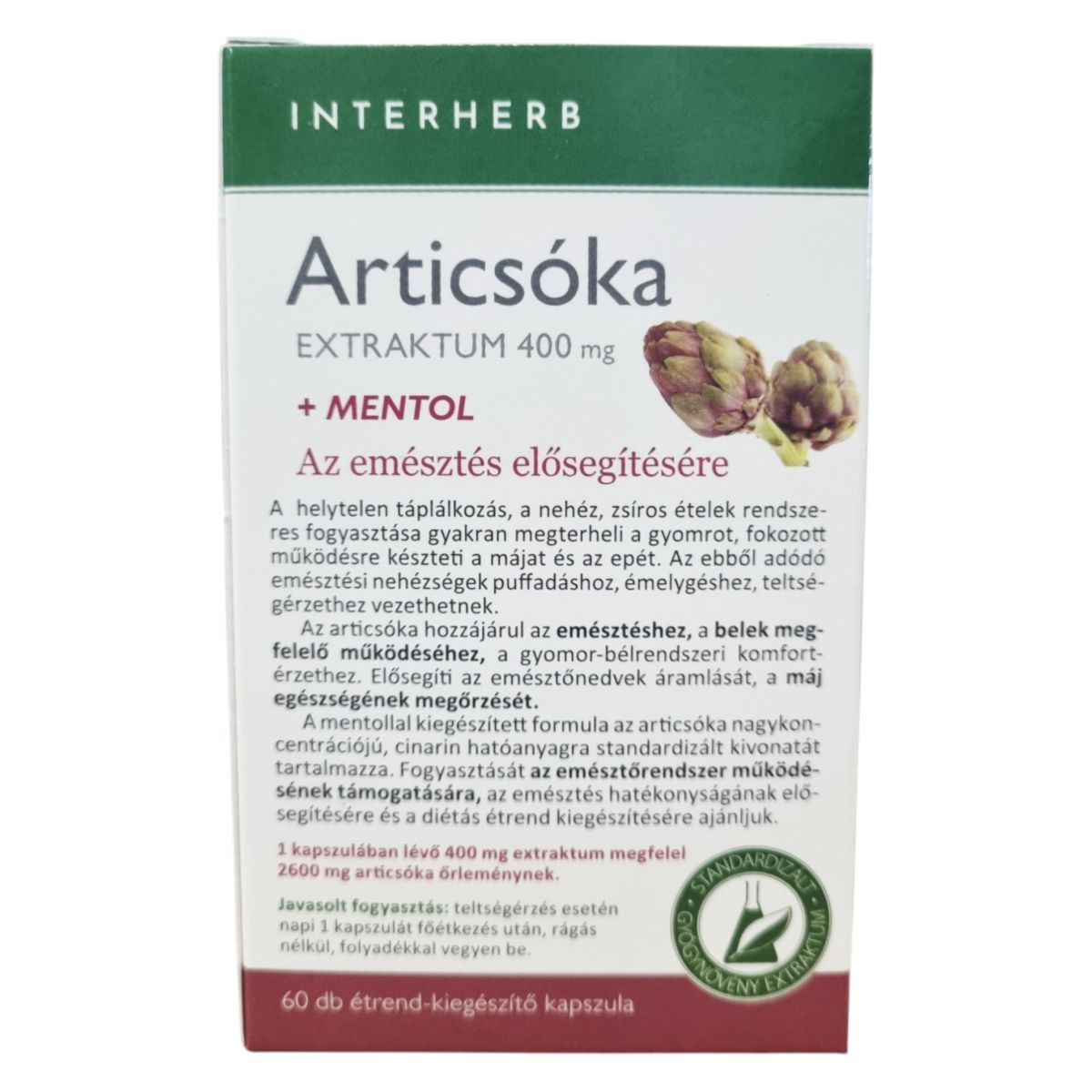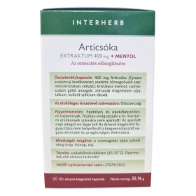 Az INTERHERB Articsóka EXTRAKTUM 400 mg + MENTOL kapszula az emésztés elősegítésére szolgál, különösen a nehéz, zsíros ételek fogyasztása után. Az articsóka hozzájárulhat a belek megfelelő működéséhez és a máj egészségének megőrzéséhez. A termék koncentrált extraktumot tartalmaz, amely megbízható minőséget garantál. Az articsóka levélkivonat Olaszországból származik, és a termék hazai fejlesztés eredménye. A kapszula kristályos mentolt is tartalmaz, amely segíthet az emésztőrendszer működésének támogatásában.