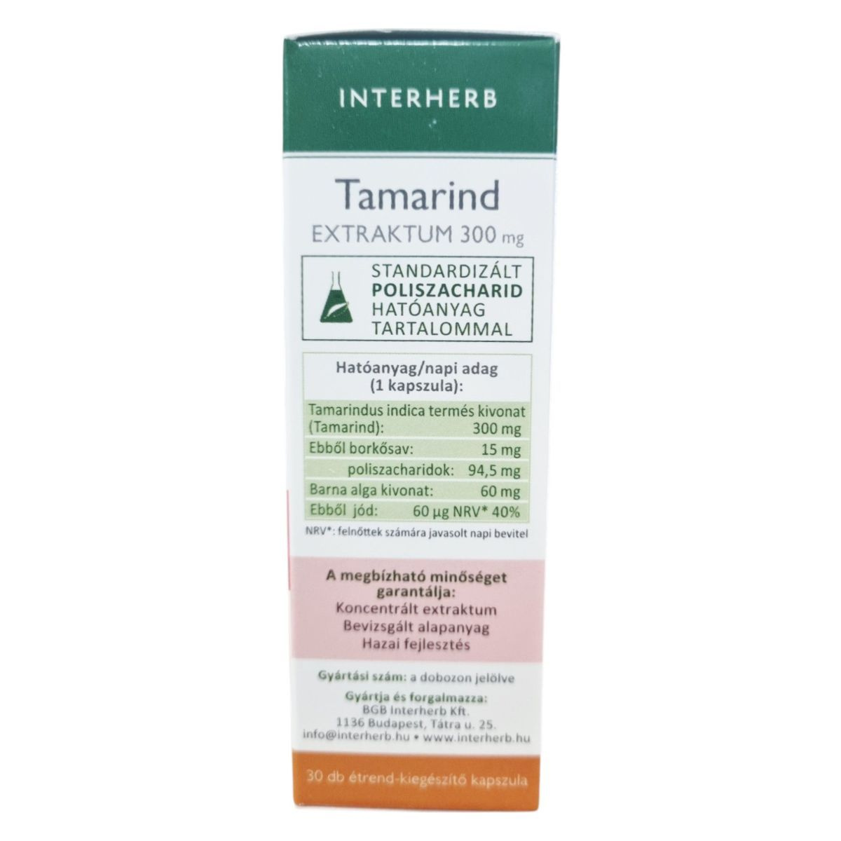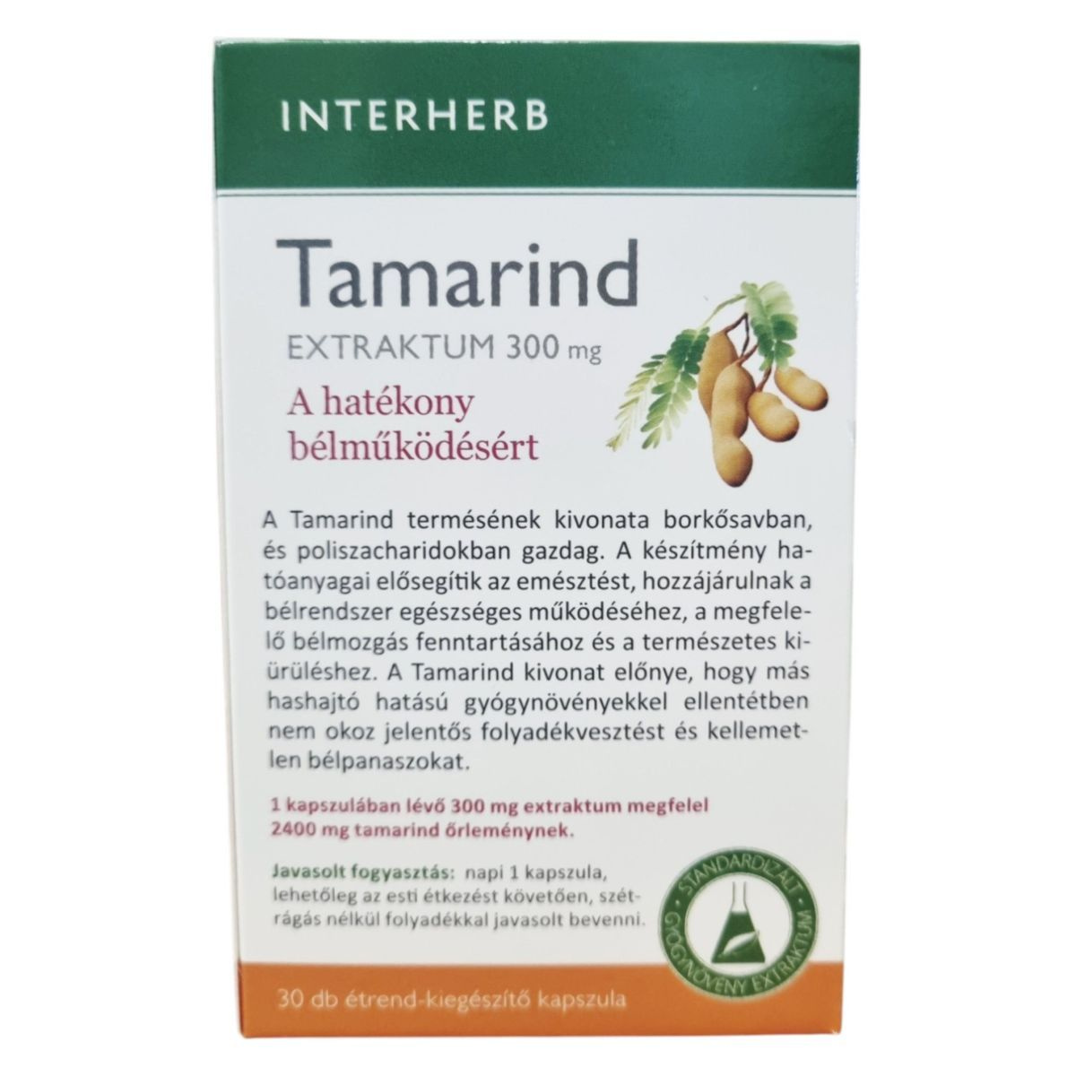 Az INTERHERB Tamarind EXTRAKTUM 300 mg kapszula egy standardizált gyógynövény kivonat, amely a Tamarindus indica terméséből származik. A termék borkősavban és poliszacharidokban gazdag, ami hozzájárulhat a bélrendszer egészséges működéséhez és a megfelelő bélmozgás fenntartásához. A kapszula előnye, hogy más hashajtó hatású gyógynövényekkel ellentétben nem okoz jelentős folyadékvesztést és kellemetlen bélpanaszokat. A termék koncentrált extraktumot tartalmaz, amely bevizsgált alapanyagokból készült, és hazai fejlesztés eredménye.