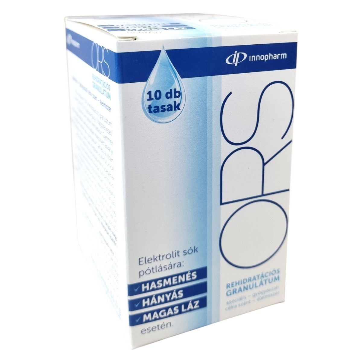 Az Innopharm ORS rehidratációs granulátum a WHO/UNICEF ajánlásával készült ásványi anyagokat tartalmazó ásványianyag- és elektrolit pótló granulátum. Vízben feloldva megfelel a WHO/UNICEF által előírt elektrolit sók pótlási mennyiségének és ozmolaritásának (245 mmol/liter). A termék összetevői segíthetik a fokozott folyadékvesztés, például hasmenés, hányás vagy izzadással járó magas láz esetén a szervezet ásványi anyag egyensúlyának helyreállítását. A feloldott oldat enyhén sós ízű. A termék nettó tömege 53,5 g, mely 10 darab 5,35 grammos tasakot tartalmaz.