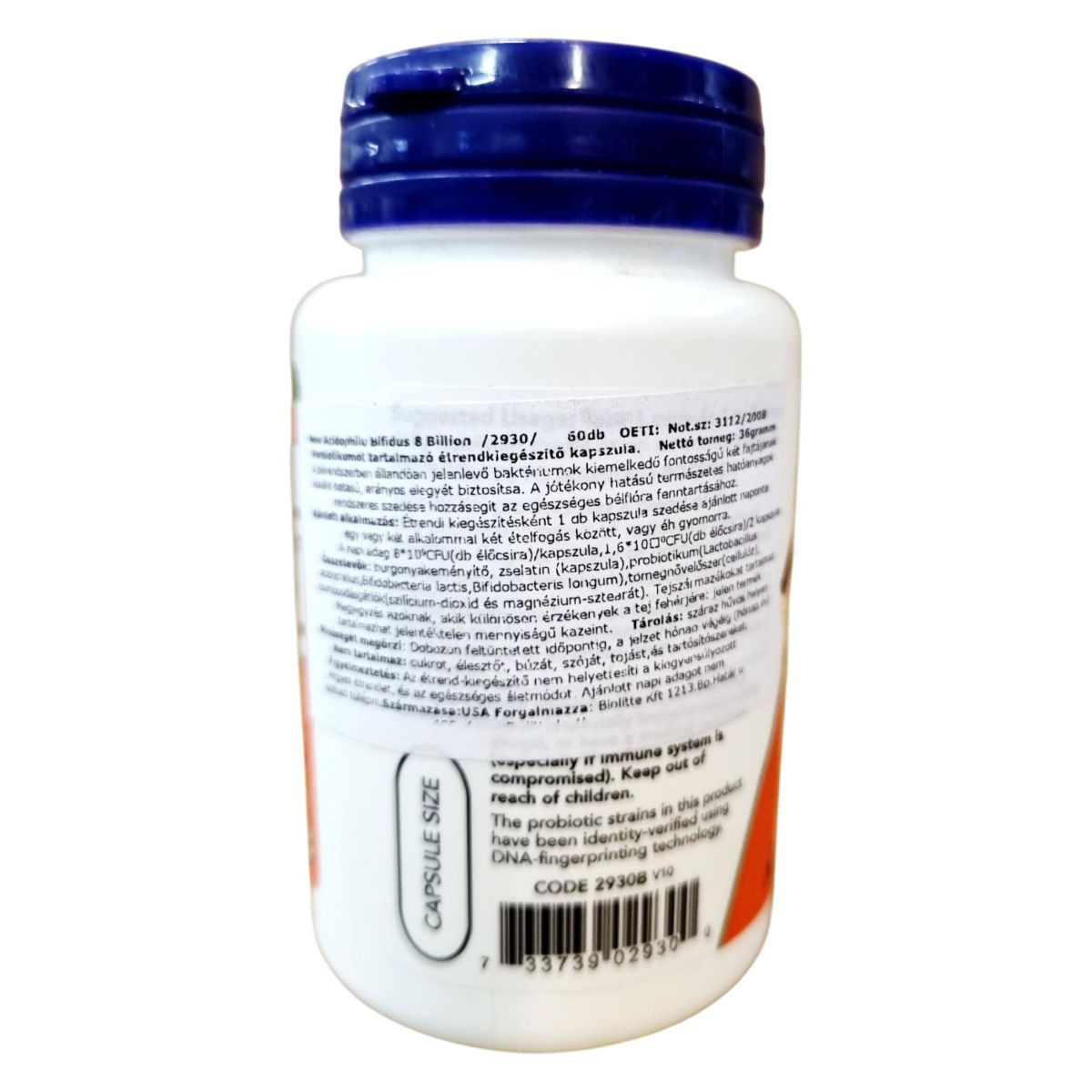 A NOW 8 Billion Acidophilus & Bifidus egy probiotikumot tartalmazó étrendkiegészítő kapszula, amely 8 milliárd CFU probiotikus baktériumot biztosít adagonként. A termék célja, hogy támogassa az egészséges bélflóra fenntartását, hozzájárulva a pozitív probiotikus egyensúlyhoz. A kapszula vegetáriánus és vegán étrendbe is beilleszthető, valamint gluténmentes. A termék nem tartalmaz tejet, szóját, tojást, halat, kagylót vagy szezámmagot, de nyomokban tartalmazhatja ezeket. A NOW FOODS által gyártott termék GMP minősítéssel rendelkezik, és az USA-ban készült, globálisan beszerzett összetevőkből.