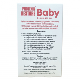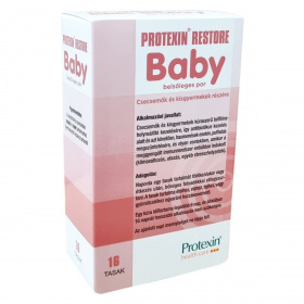 A Protexin® Restore Baby egy gyógyszernek nem minősülő gyógyhatású készítmény, melynek hatását szakirodalmi adatok igazolják. Hatóanyagai olyan probiotikus baktériumok, amelyek az egészséges szervezet bélflórájának összetevői lehetnek. Alkalmazása javasolt csecsemők és kisgyermekek számára a bélflóra helyreállítására, különösen antibiotikumos kezelés során és azt követően, hasmenések, puffadás esetén, illetve olyan helyzetekben, amikor a meggyengült immunrendszer erősítése indokolt, például klímaváltozás, utazás vagy egyéb stresszhelyzetek idején. A készítmény tasakos kiszerelésben kapható, és bőséges folyadékkal, valamint ételekhez vagy italokhoz keverve fogyasztható. Az ajánlott napi mennyiséget nem szabad túllépni, és az alkalmazás időtartama általában legfeljebb 16 nap.