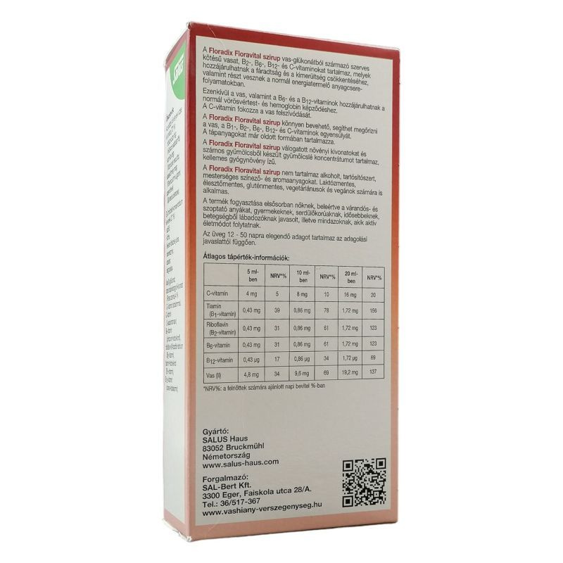 A Floradix Floravital szirup könnyen bevehető, segíthet megőrizni a vas, a B1-, B2-, B6-, B12- és C-vitaminok egyensúlyát.