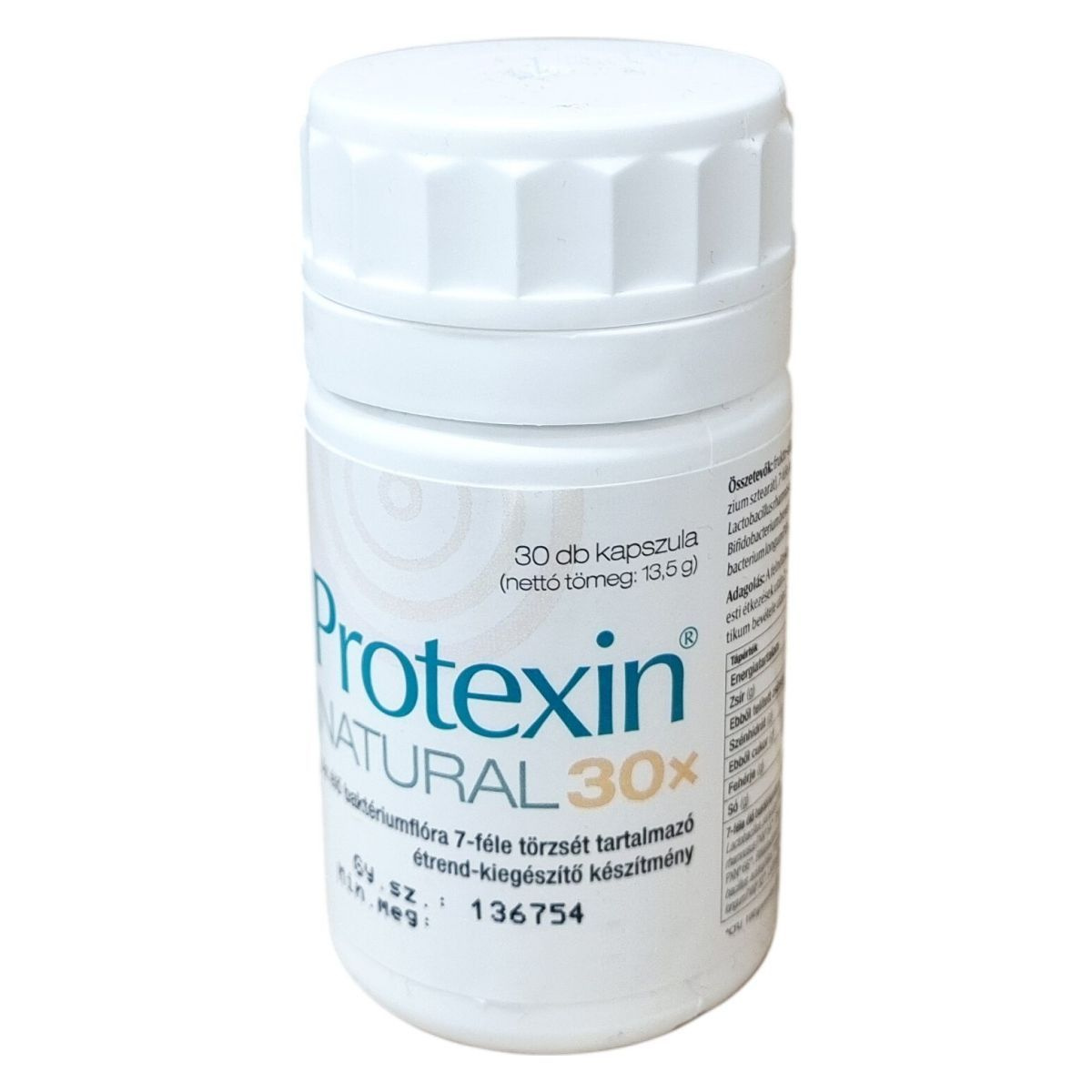A Protexin® NATURAL kapszula 7-féle élő baktériumtörzset tartalmaz az egészséges baktériumflóra támogatására. A hatóanyagokat prebiotikum, frukto-oligoszacharid egészíti ki, amely segítheti az élő baktériumok fennmaradását és szaporodását. Az ajánlott adag felnőttek számára napi két kapszula, amelyet az étkezések után érdemes bevenni, különösen antibiotikum használata esetén, amely után legalább 3-4 óra várakozás javasolt. Allergénként tej és szója fordul elő a készítményben, de ezek mennyisége nem okoz problémát laktóz intolerancia esetén. A termék a fő összetevők mellett töltőanyagokat és csomósodásgátlót is tartalmaz a megfelelő forma és stabilitás érdekében. Fontos, hogy a készítmény nem helyettesíti a változatos, kiegyensúlyozott étrendet, és gyermekek elől elzárva kell tartani.