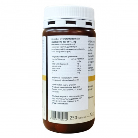 Aromás préselt tabletta szopogatásra. 250 tabletta = 123 g. Német gyártás. Minőségét megőrzi: a dobozon feltüntetett ideig (nap/hónap/év).