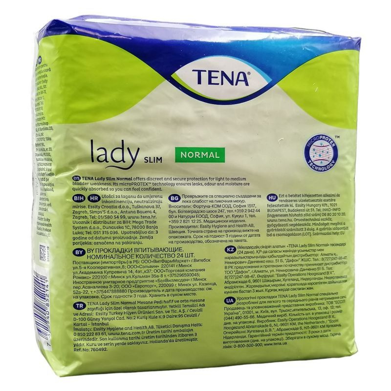 A TENA Lady Slim Normal betét hossza megegyezik egy normál egészségügyi betét méretével, használata azonban alkalmi és rendszeres vizeletvesztés esetén ajánlott.