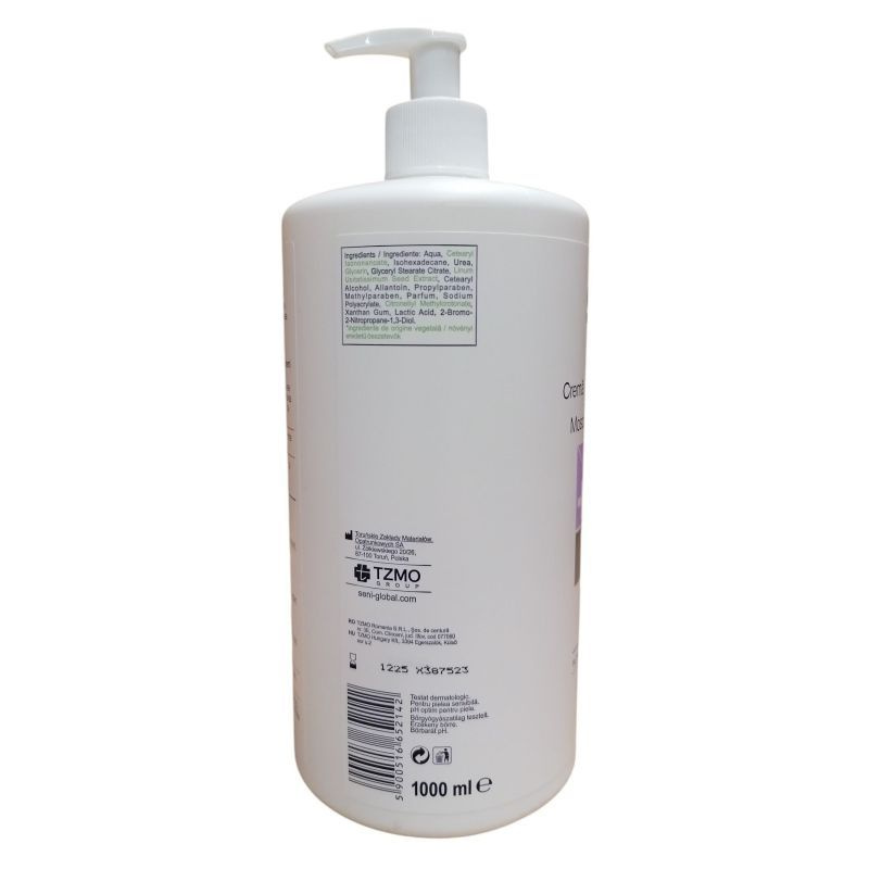 Praktikus pumpás adagolóval, mindennapos használatra. Aktív hatóanyagai: 3% urea, lenmag biokomplex, glicerin, tejsav.