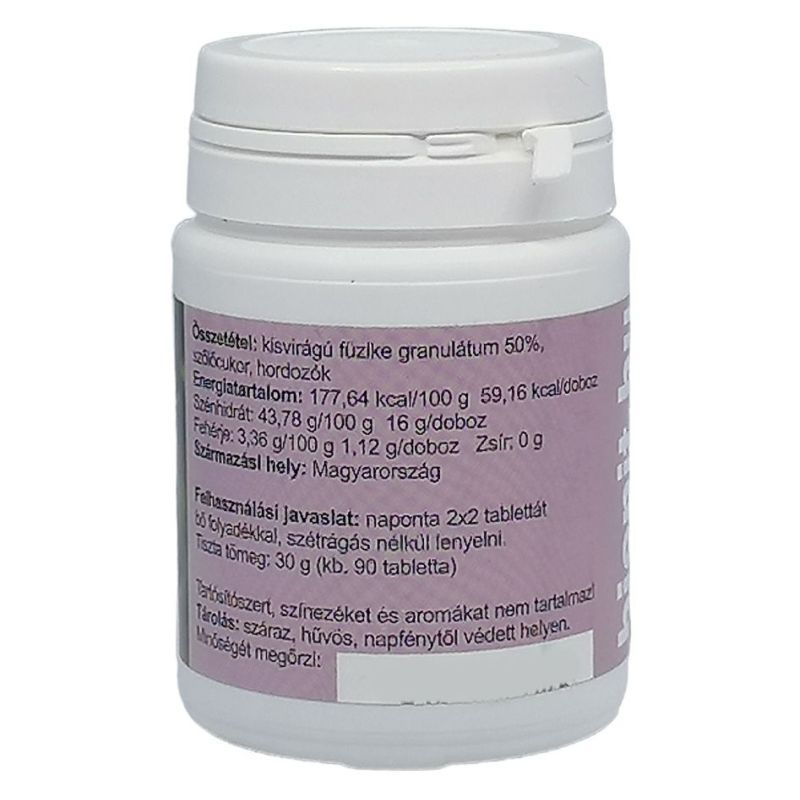 Prosztata problémákra kiválóan alkalmazható. Alkalmazása férfiaknak megelőzés céljából 45 év felett ajánlatos. Hólyaggyengeség vagy hólyag illetve húgycsőgyulladásban szenvedő nők számára is ajánlatos, mivel gátolja a gyulladást és növeli a vizelet mennyiségét. A kisvirágú füzike fő hatóanyaga a béta-szitoszterin. Összetétel: szőlőcukor, kisvirágú füzike granulátum, hordozók. Adagolás: naponta 2x2-3 tablettát bő folyadékkal szétrágás nélkül lenyelni.