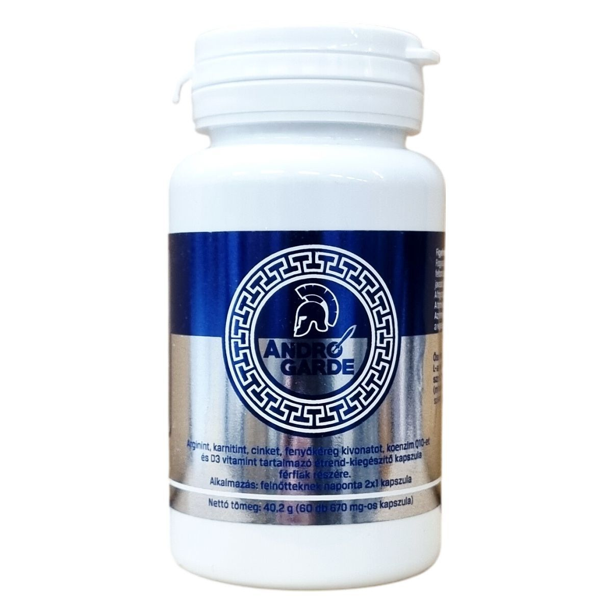 Az Andro Garde készítmény arginint, karnitint, cinket, fenyőkéreg kivonatot, koenzim Q10-et és D3 vitamint tartalmaz. A net tömege 40,2 g, amely 60 darab, egyenként 670 mg-os kapszulát foglal magában. A termék származási helye az Európai Unió. A minőségét a flakonon jelzett időpontig megőrzi. A napi adag két kapszula, melyek hatóanyagtartalma részletesen meg van adva a terméken. A felbontott flakont vissza kell zárni, és két hónapon belül el kell fogyasztani, hogy megőrizze minőségét.