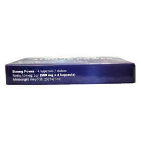 A STRONG POWER egy 4 kapszulából álló kiszerelésű étrendkiegészítő, amelynek nettó tömege 2 gramm. Kizárólag növényi kivonatokat tartalmaz, így természetes összetevői lehetnek a Maca gyökér, Gotu Kola, Panax Ginseng és Rhodiola Rosea. A termék Kínában készül. Magas vérnyomás esetén, vagy érzékenység esetén tanácsos az alkalmazását mérlegelni. Fontos megjegyezni, hogy az étrend-kiegészítő nem helyettesíti a kiegyensúlyozott étrendet és az egészséges életmódot, ezért használata mellett is javasolt a változatos táplálkozás és rendszeres mozgás.