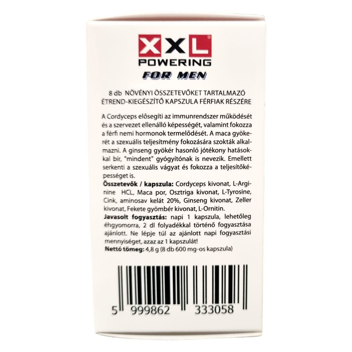 A termék férfiak részére készült, így fogyasztása gyermekeknek 18 év alatt, nőknek, magas vérnyomásban szenvedőknek nem ajánlott. Befolyással lehet a vércukorszintre. Adaptogén hatású. Gyerekek elől elzárva tartandó. Az étrend-kiegészítő nem helyettesíti a kiegyensúlyozott vegyes étrendet és az egészséges életmódot.