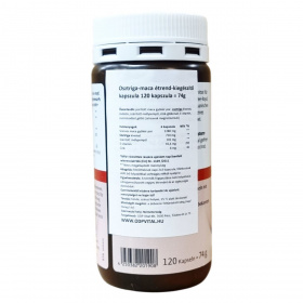 Osztriga- és maca-tartalmú étrend-kiegészítő kapszula cinkkel és E-vitaminnal, felnőttek számára. Napi adagolással, növényi és állati eredetű összetevőkkel.