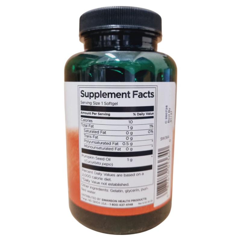 A Swanson Tökmagolaj kapszula 1000 mg tökmagolajat tartalmaz, amelyet a Cucurbita pepo növényből nyernek. A termék lágyzselatin kapszulák formájában kapható, és napi egy kapszula fogyasztása javasolt. A termék nem helyettesíti a vegyes étrendet és az egészséges életmódot, és fontos, hogy a dobozt gyermekek elől elzárva tartsuk. A kapszulák összetevői között megtalálható a zselatin, glicerin és tisztított víz. A termék gyártója a Swanson Health Products, és az OGYÉI notifikációs száma 30869/2023.