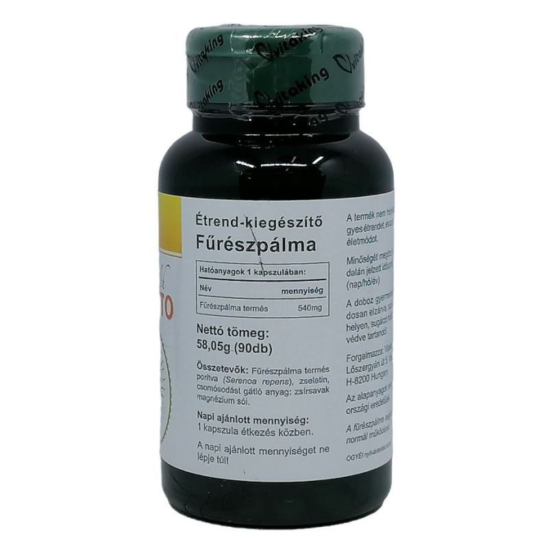A fűrészpálma (Saw Palmetto) csökkenteni a tesztoszteront dihidrotesztoszteronná alakító enzim aktivitását, így a prosztatával kapcsolatos problémák kezelhetővé válnak. A fűrészpálma kivonat hozzájárul a prosztata egészséges működésének fenntartásához. OÉTI bejegyzési szám: 11930/2012 Napi ajánlott mennyiség: 1 kapszula A felhasználási javaslatban megadott mennyiséget ne lépje túl! A termék nem helyettesíti a vegyes étrendet és az egészséges életmódot. A doboz gyermekek elől gondosan elzárva tartandó!