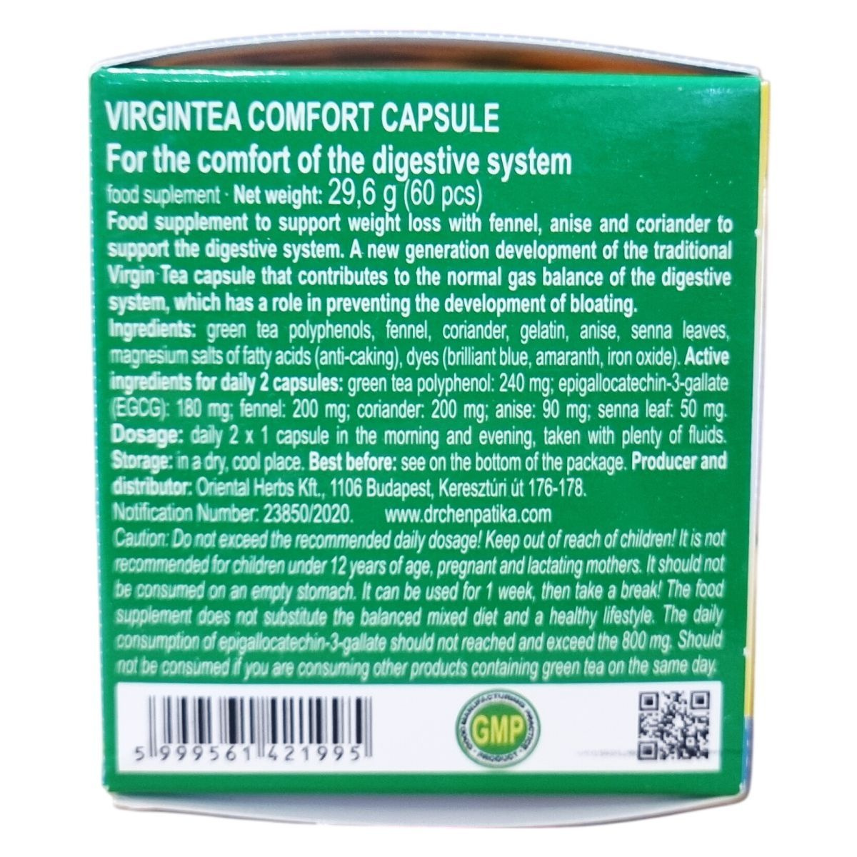 A Szűztea Comfort a hagyományos Szűztea új generációs fejlesztése, amely kifejezetten az emésztés normál gáz-egyensúlyának fenntartását célozza. Összetevői között megtalálható a zöldtea polifenol, mely hozzájárulhat az anyagcsere támogatásához és a zsírok oxidációjához, valamint az olyan gyógynövények, mint az édeskömény és az ánizs, amelyek az emésztőrendszer egészségét támogathatják. A koriander segíthet fenntartani a normál gáz-egyensúlyt, ezáltal támogatva a puffadás megelőzését, míg a szennalevél hozzájárulhat a bélműködés rendszerességéhez és az emésztés ritmusának fenntartásához. A termék nem helyettesíti a kiegyensúlyozott étrendet és az egészséges életmódot.