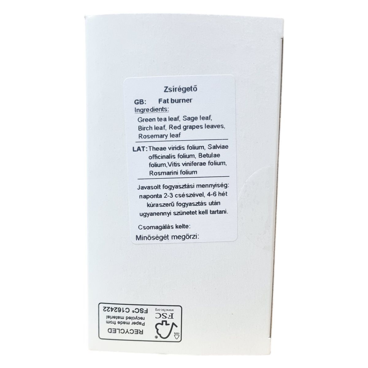 A Fat burner-zsírégető tea egy finom és egészséges ital, amely segíthet a zsírégetésben. Élvezd a gyógynövények jótékony hatásait, és támogasd a fogyókúrádat ezzel a különleges teával!