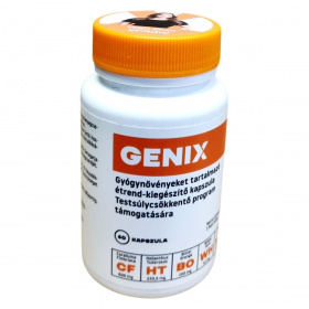 A GENIX étrend-kiegészítő kapszula különböző gyógynövények kivonatait tartalmazza, amelyek hozzájárulhatnak a testsúly-kontrollhoz és az anyagcsere támogatásához. A Helianthus tuberosus támogathatja a zsíranyagcserét, míg a Chamaenerion angustifolium (Willow herb) hozzájárulhat az anyagcsere és a bélaktivitás stimulálásához, valamint a májműködés aktiválásához. Az Acer campestre (Hedge maple buds) támogathatja a fehérjék, szénhidrátok és lipidek anyagcseréjét. A termék 60 kapszulát tartalmaz, amely egy havi adagnak felel meg. Az alapanyagok Kínából származnak.