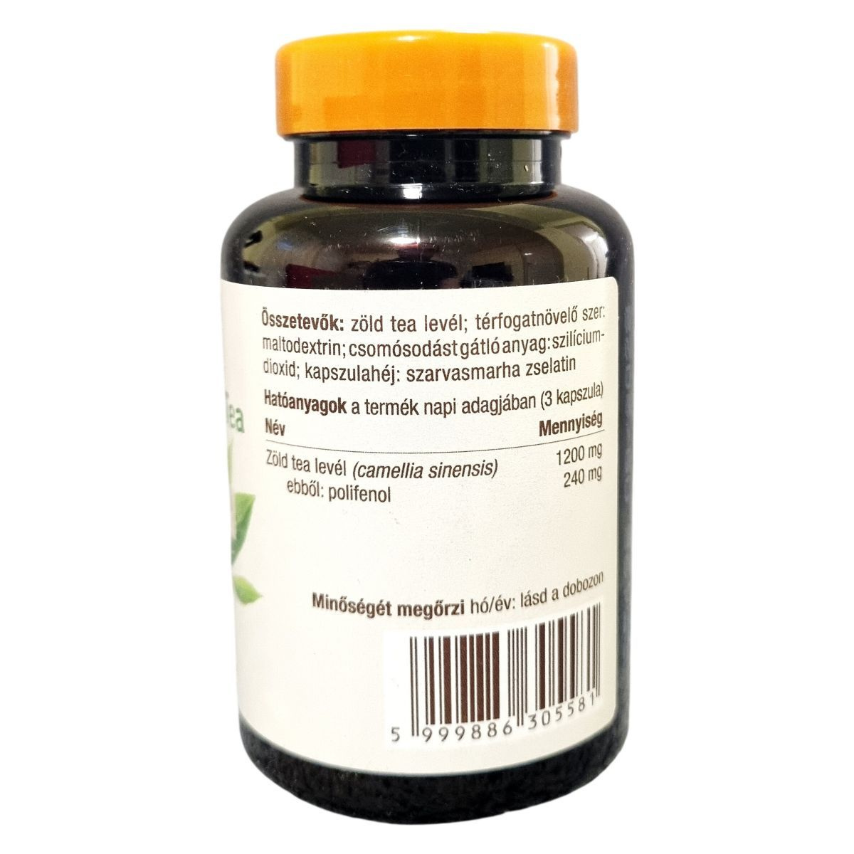 zöld tea levél, maltodextrin, szilícium-dioxid, szarvasmarha zselatin