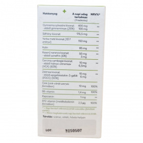 Az Étvágy Kontroll Komplex tabletta gymnema sylvestre kivonatot és más növényi hatóanyagokat tartalmaz, amelyek hozzájárulhatnak az étvágy csökkentéséhez és a normál anyagcsere fenntartásához.