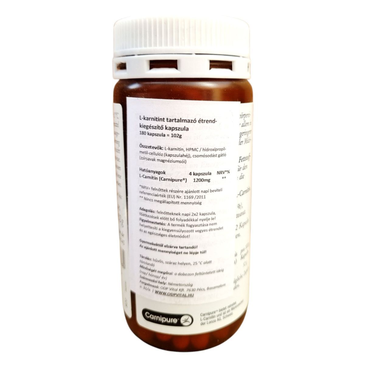 L-karnitin, HPMC / hidroxi-propil-metil-cellulóz (kapszulahéj), csomósodást gátló (zsírsavak magnézium sói)