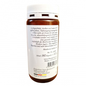 A SANCT BERNHARD L-CARNITIN kapszula egy L-karnitint tartalmazó étrend-kiegészítő, amely a Lonza által gyártott Carnipure minőségű L-karnitint tartalmazza. A termék 180 kapszulát tartalmaz, összesen 102g súlyban. Az L-karnitin hozzájárulhat a zsírsavak szállításához és a sejtek energiatermeléséhez, így támogathatja a szervezet energiafelhasználását. A kapszulák HPMC kapszulahéjjal és csomósodást gátló anyagokkal készülnek. A termék fogyasztása nem helyettesíti a kiegyensúlyozott étrendet és az egészséges életmódot, és gyermekektől elzárva tartandó. A terméket hűvös, száraz helyen, 25 °C alatt kell tárolni.