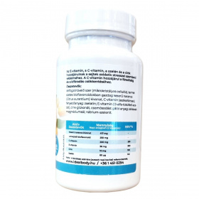 Az Antioxidáns étrend-kiegészítő kapszula bioflavonoidokkal, C-vitaminnal, E-vitaminnal, cinkkel és szelénnel készülhet, amelyek hozzájárulhatnak a sejtek oxidatív stresszel szembeni védelméhez és csökkenthetik a fáradtságot.