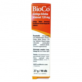 A BioCo® Ginkgo biloba kivonat tabletta a hagyományosan ismert Ginkgo biloba értékes hatóanyagainak standardizált kivonatát tartalmazza tablettánként 120 mg mennyiségben. A termék hozzájárulhat többek között a normál szellemi működés, a memória és az időskori agyműködés támogatásához, valamint a perifériás keringési rendszer (például a végtagok vérkeringése) normál működéséhez és a megfelelő véráramláshoz. A készítmény magyar fejlesztésű és gyártású, bár hatóanyagai nem Magyarországról származnak. A BioCo Magyarország Kft. ISO 22000 szabvány és GMP irányelvek szerint tanúsított élelmiszerbiztonsági rendszert működtet. A "BioCo" megnevezés bejegyzett cégnevet jelent, nem pedig ökológiai tanúsítást.