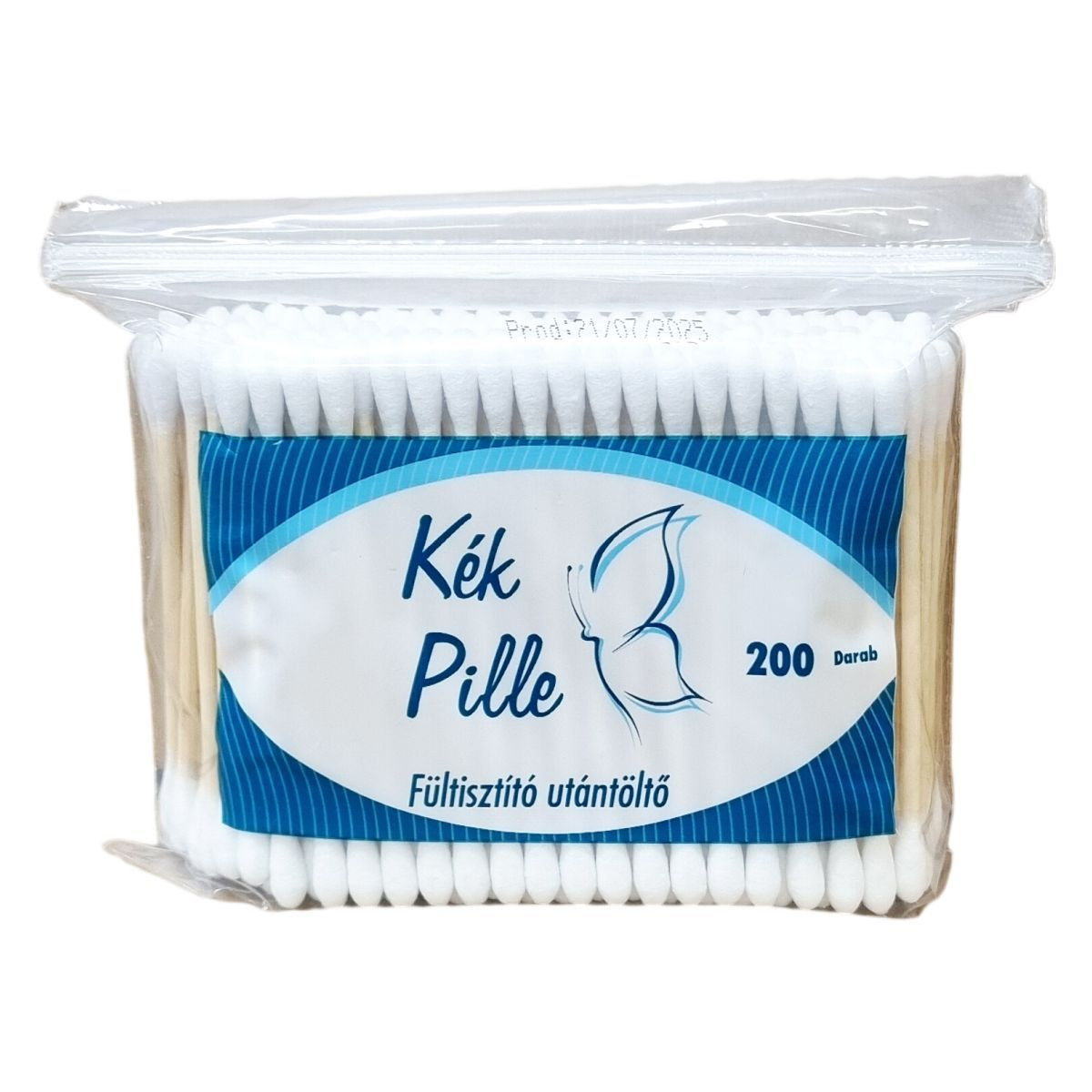 A Kék Pille fültisztító utántöltő 200 darab pálcikát tartalmaz, amelyek vége 100% pamutból készült. A termék Kínában gyártott és mindennapos fültisztításra készült, azonban nem szabad a hallójáratba bevezetni a biztonság érdekében. A termék a gyártástól számított 5 évig megőrzi minőségét. A gyártási idő a csomagoláson található megjelölés szerint olvasható. Termék vonalkódja: 5997467110333.
